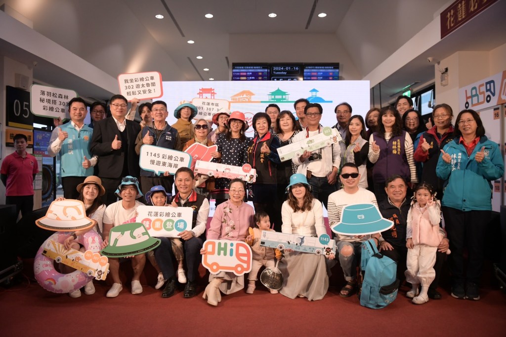 花蓮縣政府於今(16)日於花蓮轉運站舉辦彩繪公車成果發表會,縣長徐榛蔚親自出席成果發表會,親揭四色彩繪公車亮相,「紅、綠、黃、藍」四色識別系統的彩繪公車行走在道路上,代表著花蓮移動的風景,象徵花蓮市區、峽谷、縱谷、海岸及跨越山海線,讓民眾一眼就能識別花蓮極具代表的特色景點公車。