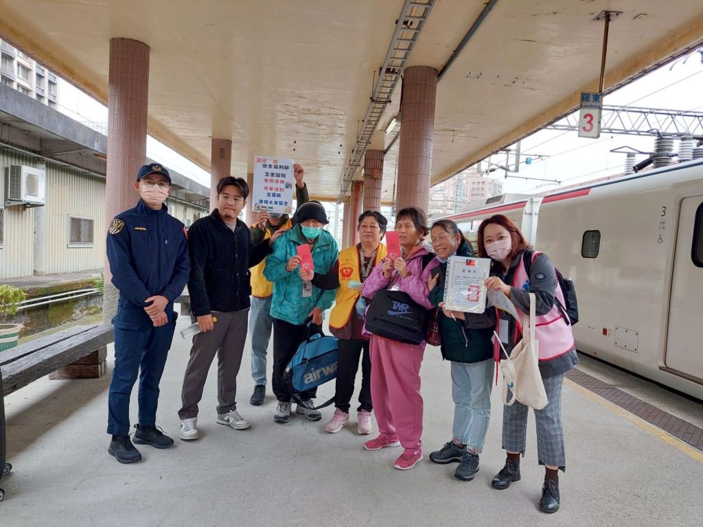 玉醫專業團隊與住民們來到玉里火車站集合,院長簡以嘉及陳興剛副院長更是一大早就來到現場為思鄉的住民們送行外,並慰勞全體工作人員的辛勞,也感謝交通部臺灣鐵路管理局、鐵路警察局花蓮分局玉里派出所與各縣市康復之友協會等單位多年來對此活動的支持才能讓活動順利進行。出發前,簡院長如同家長般不時叮囑住民們返家仍要按時服藥、作息正常等,讓住民們感到窩心。