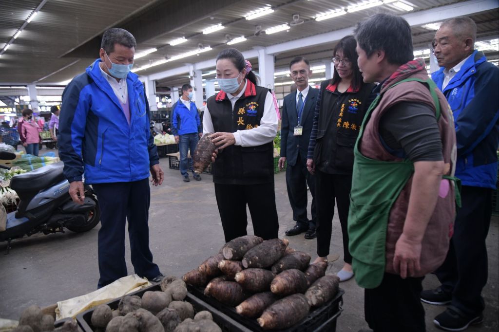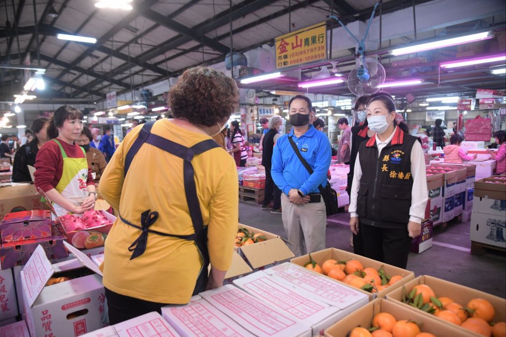 農曆春節將至,縣長徐榛蔚今(7)日上午特率縣府農業處長陳淑雯前往花蓮市果菜市場,向果菜市場的經營單位花蓮縣蔬菜運銷合作社、果菜市場攤商以及前往採購之民眾拜早年,並關心農曆春節期間蔬菜水果供應情形,勉力花蔬與各攤商提供品質優良的農產品,讓鄉親可以快樂度過農曆春節。