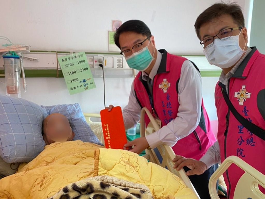 隨著近期氣溫驟變,醫院湧入不少咳嗽、發燒及呼吸道等症狀的患者,玉榮院長胡宗明於春節前夕,率領社工室余俊明主任及醫護同仁,親自到病房關懷慰問住院榮民、榮眷,並獻上誠摯的祝福與關懷,希冀能夠早日康復,出院返家與家人團聚,讓受探視的住院榮民、榮眷前輩們感動不已。