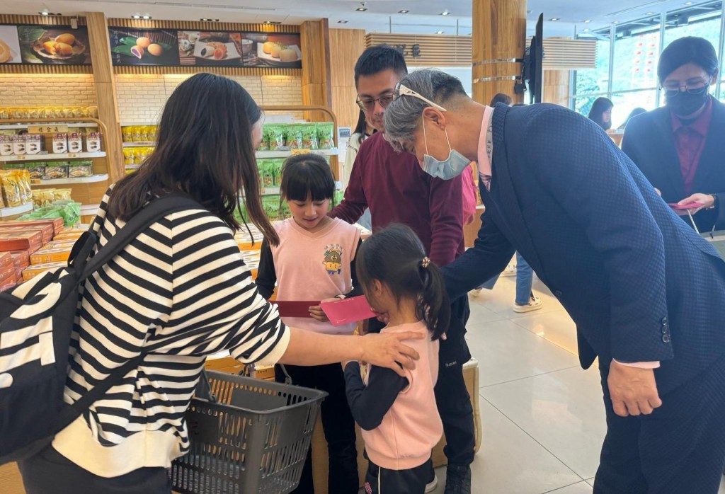 董事長蕫椿霳表示,非常感謝今(11)日光顧曾記麻糬的顧客們,親自送上幸福小紅包希望客人們幸福滿滿、龍年行大運、好運旺旺來、闔家平安。