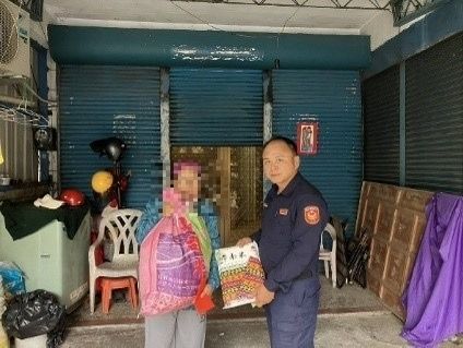 副所長李坤隆經查訪得知轄區低收入戶生活困苦,平時打零工維生沒有穩定收入,轉介廟方協助贈送白米及紅包過得好年,讓陳婦及崔婦笑著感謝員警在平日給予關懷及幫助,也希望農曆春節感受喜氣洋洋的氛圍,歲末寒冬之際不會感到孤單。