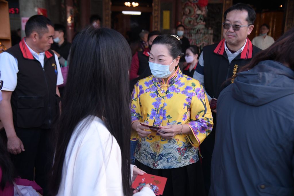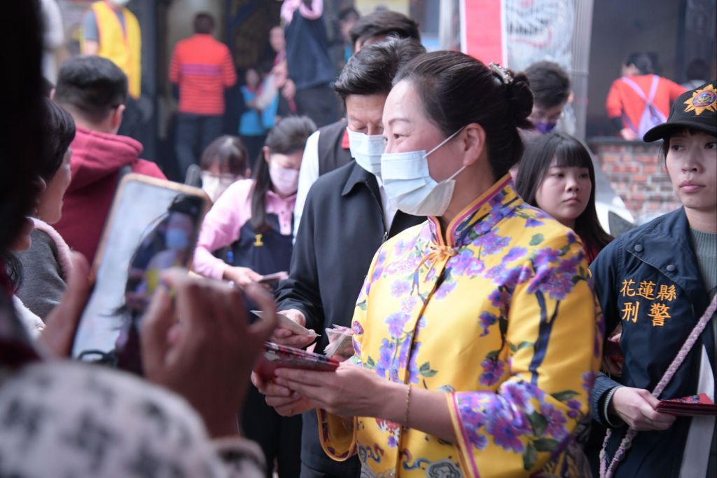 農曆大年初四天氣晴朗,許多鄉親一早便前往宮廟參拜祈福今年順利,徐縣長一抵達就展現親和力,與現場鄉親一一握手問好,並向眾神虔心祈求今年縣運平安。現場人潮眾多,排隊人龍甚至延伸幾百公尺之長,鄉親依序領取新年福袋,並紛紛要求與縣長合影留念,現場氣氛歡欣熱絡。