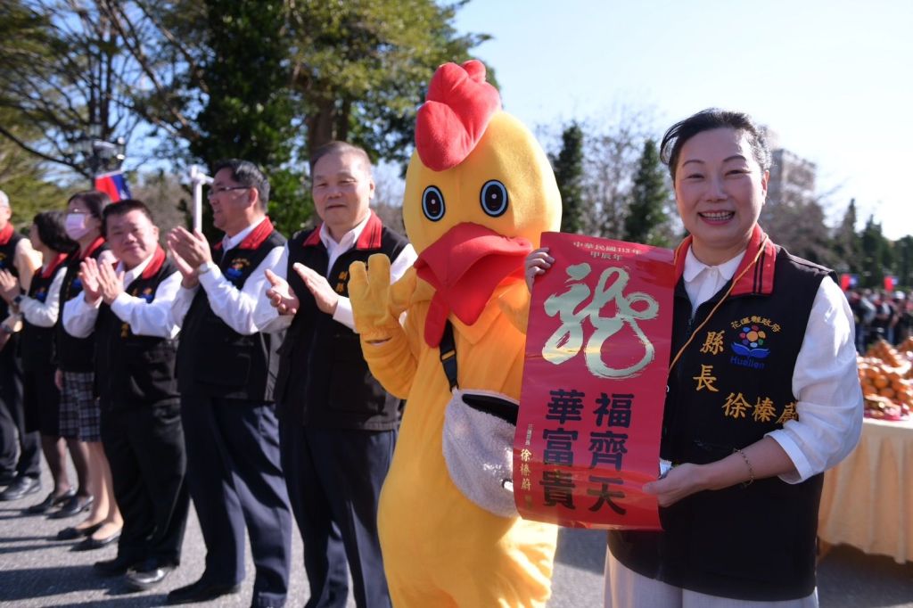 花蓮縣政府今(15)日舉行113年新春團拜,開場由縣長徐榛蔚親執龍珠,衛生局長朱家祥及同仁同心舞龍,相互團拜,場面溫馨熱鬧,象徵花蓮縣政府祝福全縣鄉親「玉龍踏春來、龍年好運到」。