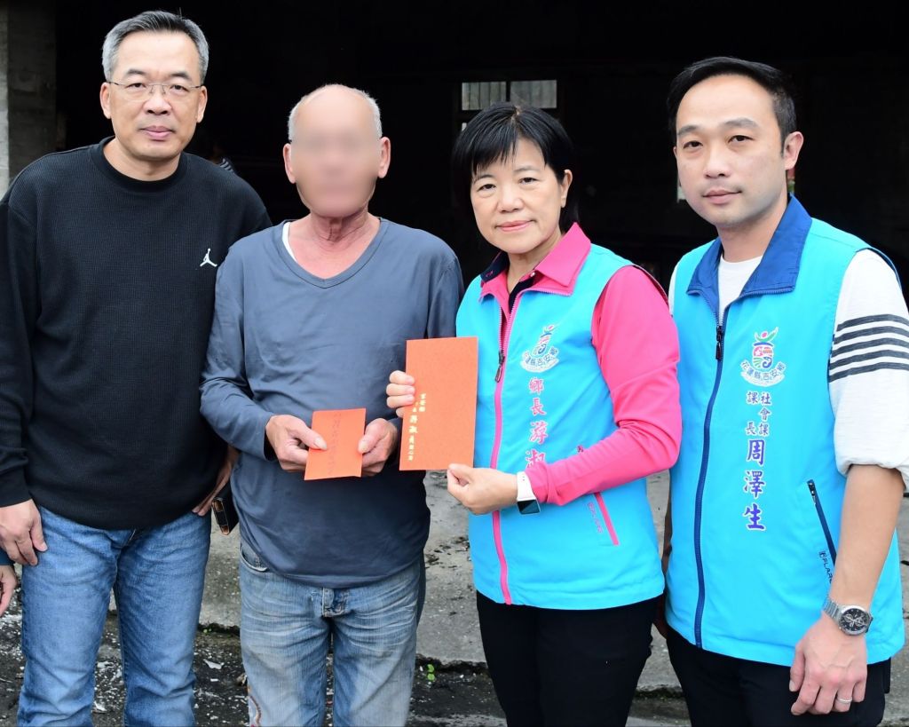 長期在黃昏市場擺攤販售水果的謝姓屋主,看到游鄉長親到場關懷,即表達感謝鄉公所社會課長周澤生與相關人員即時到場關懷,尤其是鄉長百忙中專程前來慰問份外感動。游淑貞傾聽了解災損情形,所幸無人員傷害而家中車輛也迅速獲得及時開出,未釀嚴重災情…,公所轉知火災後垃圾與災損物品,可由清潔隊協助盡速載離去化服務。朱志強副總表示,統冠連鎖超市為社區鄉里的好鄰居,得知鄰旁謝姓屋主倉庫遭祝融毀損殆盡,特隨游鄉長同來關懷,希望透過關懷慰問金聊表在地鄰巷慰問心意。
