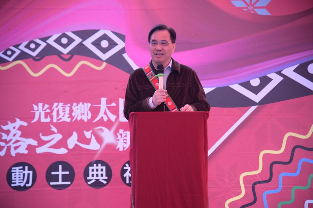 縣長徐榛蔚致詞提到,光復鄉的建設在近幾年開啟新紀元,從光復鄉公所的落成,再到今日太巴塱部落之心的動土儀式,感謝中央的支持以及地方的努力,集結大家的用心,讓每個部落都能將自己的特色文化持續傳承,尤其是花蓮全縣硬體建設都正如火如荼建置中,後續將進駐營運計劃等相關軟體,而族人們的智慧正是帶動文化傳承的根本,讓我們繼續一棒接一棒傳承給下一代!