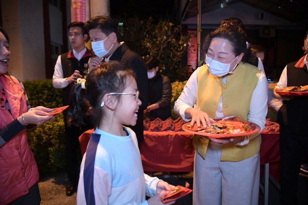 參拜後,徐縣長與傅立委發放「鰲躍龍門」新年開運福袋及甜糖予現場信眾及鄉親,讓領取民眾沾沾年節喜氣,也祝福大家一整年龍圖大展,欣欣相龍!