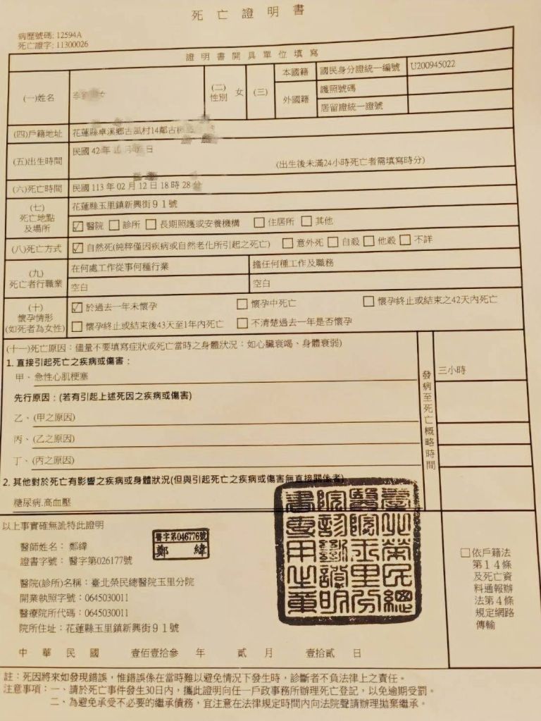大年初三,李女母親因急性心肌梗塞,急救無效,享年71歲。突如其來的噩耗,讓李家雪上加霜,李女為了母親的後事,煩惱不知如何處理。花蓮縣卓溪鄉團結力量大為卓溪鄉出力公益慈善協會理事長卓孝明獲悉後前往喪家慰問,李女表示若不是才剛出院,身體狀況還無法工作,也不會這麼無助。卓理事長對於李女的遭遇感到非常難過,除了安慰李女外,也只能期望社會善心大眾幫忙,讓亡者順利安葬,讓李女渡過難關。