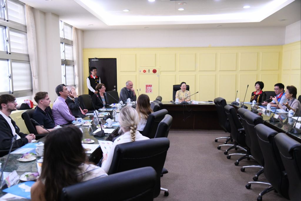 接著,參訪團來到縣府進行座談和交流,徐縣長邀請花蓮縣議會副議長徐雪玉及縣議員林品仰共同列席。參訪師生踴躍發問,如地方基層座談民眾參與比例、兒童教育、人格養成、每年赴德交換學生、營養午餐、有機食材、地方財政、環保永續生態等相關議題,縣長熱情大方回應,分享暢談公共治理經驗。