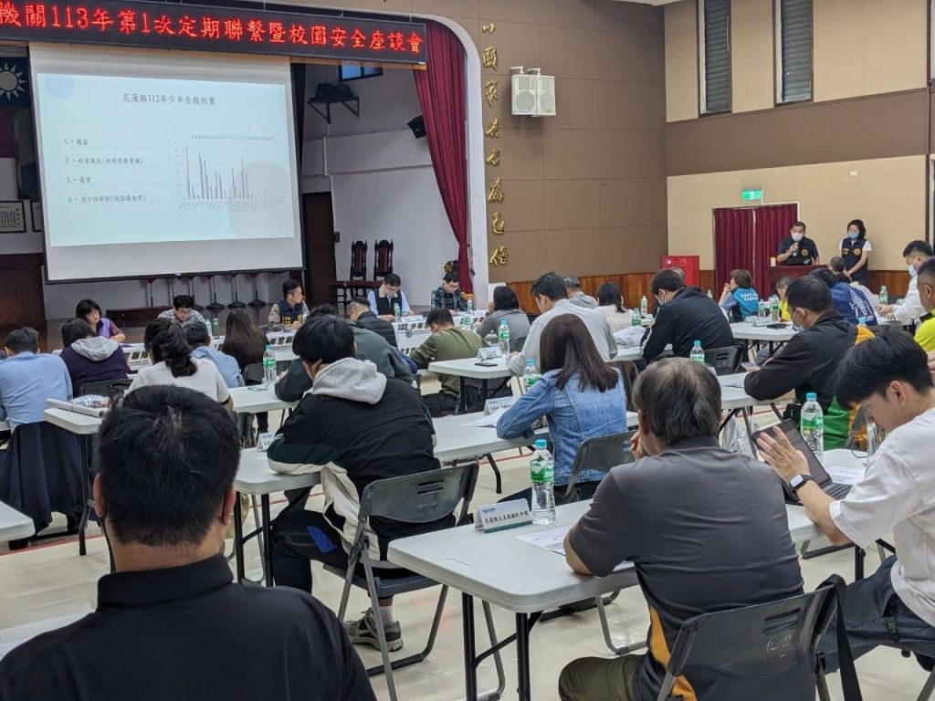 寒假過後各級學校陸續開學,為強化校園安全防護機制,花蓮縣政府結合教育、警政、社政等資源,召開教育暨警政機關聯繫會議,聚焦少年偏差(犯罪)行為,共同檢討策進各項少年事件相關作為,並防止校園內發生毒品、暴力、傷害、霸凌及勒索等行為,同時防堵黑道勢力介入,共創校園安全網。