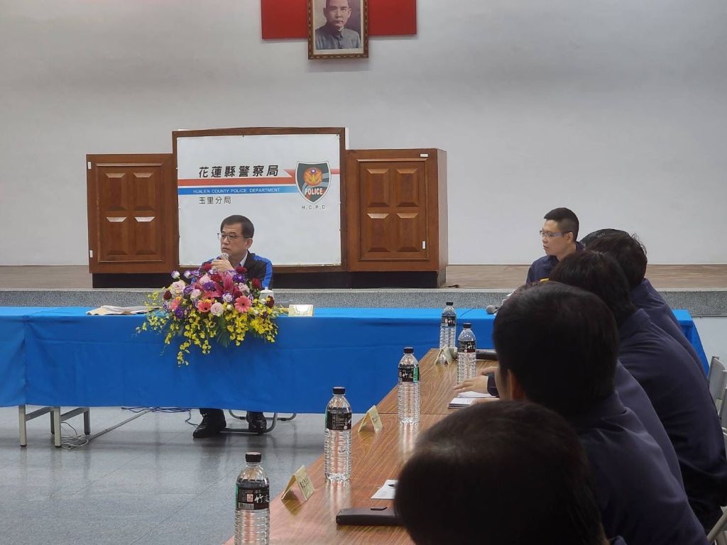 玉里分局長黃靖堯表示,感謝局長百忙中迢迢前來給予同仁支持及鼓勵,會中交換意見,讓同仁能保持熱情與熱忱的態度面對各項工作;最後為守護南區三鄉鎮美好的居住環境,所有同仁勢必同心協力讓百姓能無憂無慮、安居樂業。