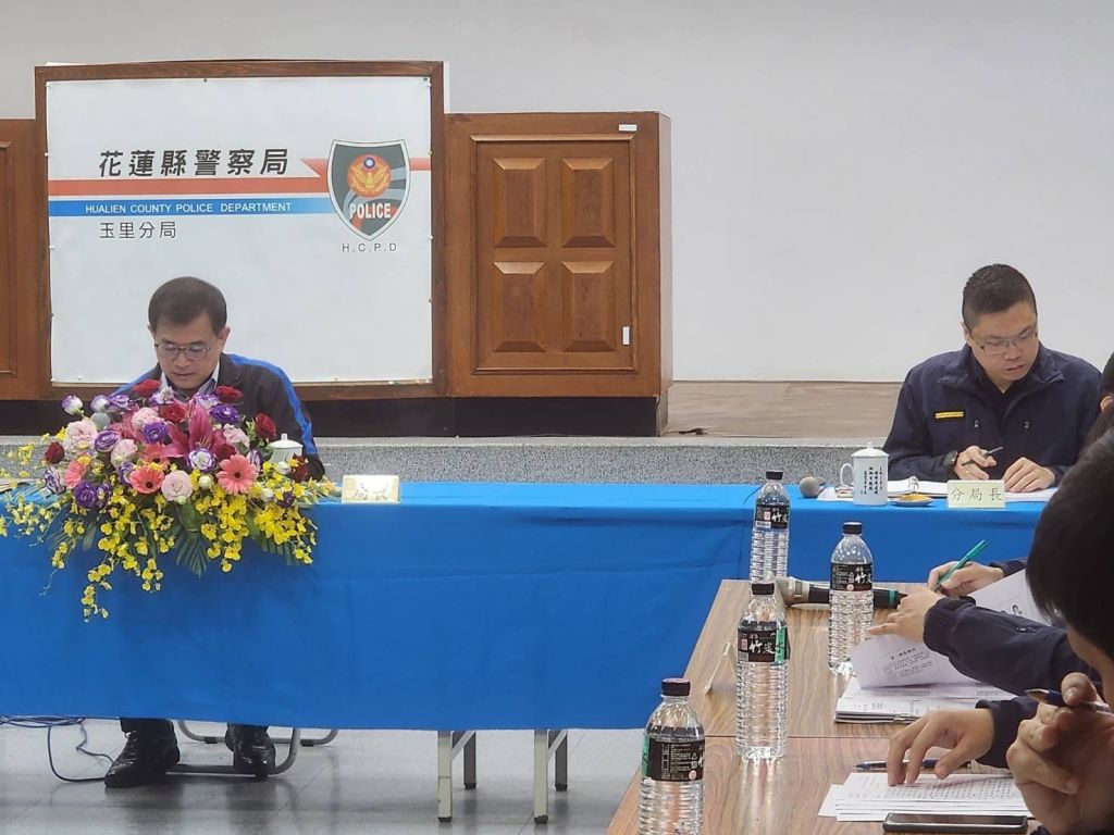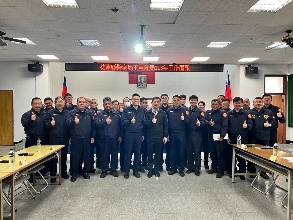花蓮縣警察局長王旭昌自1月17日上任後,馬不停蹄奔波,投入各項警政工作及訪視行程;今1日一早在隨行秘書陪同下造訪玉里分局,由分局長黃靖堯親自簡報,會中王局長感謝春節期間,同仁戮力負責完成「治安平穩、交通順暢、民眾安心」之工作,也期許未來同仁執勤時務必落實三安,警械當用則用。