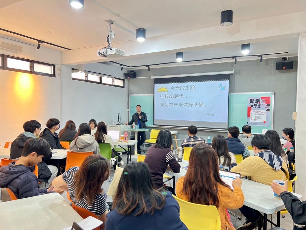 花蓮縣政府青年發展中心於2月開始,陸續辦理新創大學堂課程,首場以科技應用趨勢「迎接AI時代,如何為未來做好準備」為主題,由交點文化股份有限公司的黃敬峰創辦人擔任講師,帶領與會學員針對AI工具的基礎運用進行分享與實作。講師針對學員在工作的需求進行分類,介紹多款不同的AI工具,包含文字生成、圖像處裡、郵件分析、部落格留言分析及字幕生成等,多款的工具讓30餘名學員收穫滿滿。