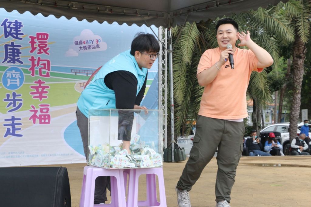 這次活動的摸彩獎品相當豐富,有市價近3萬元的Dyson吸塵器、Switch 遊戲主機、I PAD、以及Bets降噪耳機,以及多項家電類、3C 用品,還有全家禮券等等。 特別的是,今年的健走活動結合春暖花開的意象,民眾身上只要有關花的裝飾,不論是塗鴉、裝飾、衣著、造型等,就可以「花現好禮」,出示即可獲得一份小禮物,數量有限,送完為止,歡迎大家一起營造出繽紛色彩,一起感受春天萬物欣欣向榮的氣息。