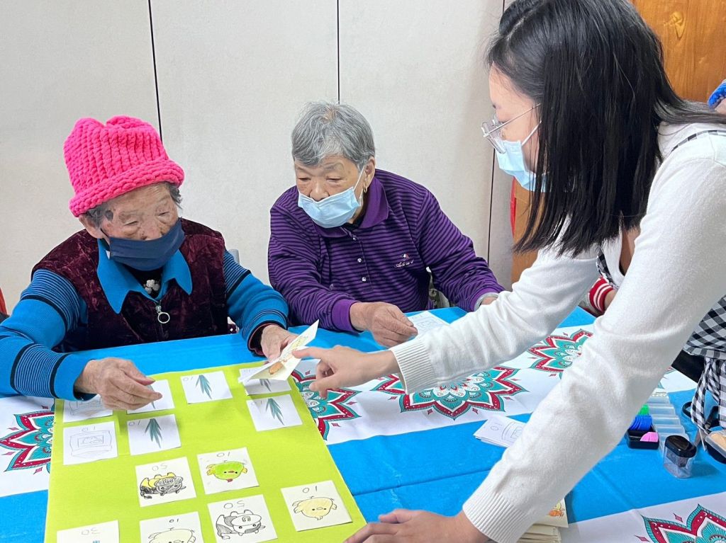14日在大禹失智據點的活動中,王郁文臨床心理師透過暖身活動協助長輩活動身體。她運用尼龍繩與氣球,讓長輩們倆倆控制同一條繩子,須適時拉緊繩子與調整繩子位置,得以達到活動上肢的效果。課程重點則以「動物農場」桌遊為活動主題,讓長輩透過購買動物及飼料牌卡,進行算術及配對的練習,另外,每張卡牌賣出價格皆不同,有部分長輩在玩過幾輪後可依靠記憶力挑選利潤較高的動物卡牌,並從中獲得成就感。整體而言,社區長輩們活動投入度高、反應熱烈,藉由桌遊活動創造輕鬆有趣的氛圍,以訓練長輩認知功能。