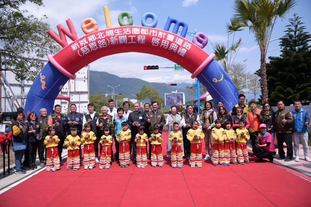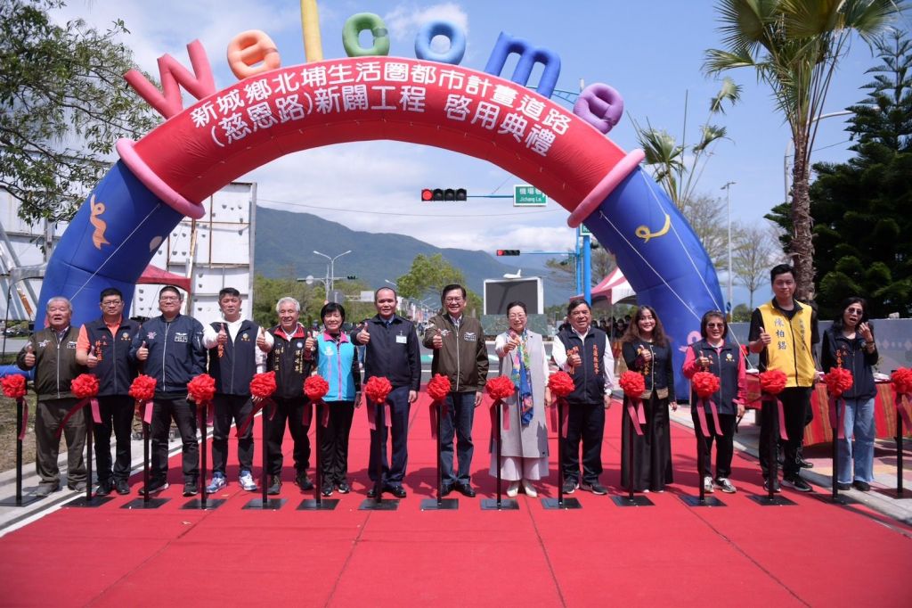 花蓮道路品質再優化!新城鄉公所今(22)日辦理「新城鄉北埔生活圈都市計畫道路(慈恩路)新闢工程啟用典禮」,縣長徐榛蔚出席剪綵,感謝地方齊心協力為新城鄉親提供更為完善便捷的交通環境。