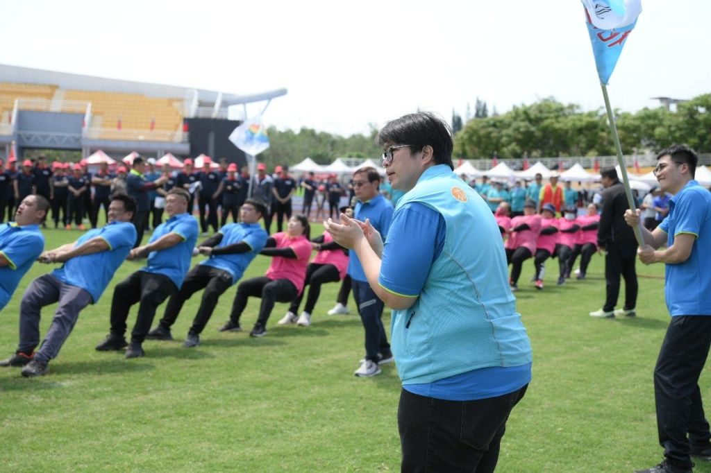 魏市長全程陪同市公所團隊參與賽事、跳大會舞,為所有選手吶喊加油,並貼心叮嚀保護自己、不要受傷,在力拔山兮氣蓋世(傳統拔河)中,清潔隊同仁集中精神、站穩腳步,以整齊的步伐及節奏,跟著口號使出渾身力氣、奮力拚搏,勇奪丙組第三名。而全場重頭戲的2000公尺大隊接力賽,魏市長也與參賽同仁圍成一圈加油打氣,氣勢高昂且蓄勢待發,哨音一響起,每位同仁卯足全力狂奔,一棒傳一棒,展現出絕佳默契,最終獲得第二名的優異成績。