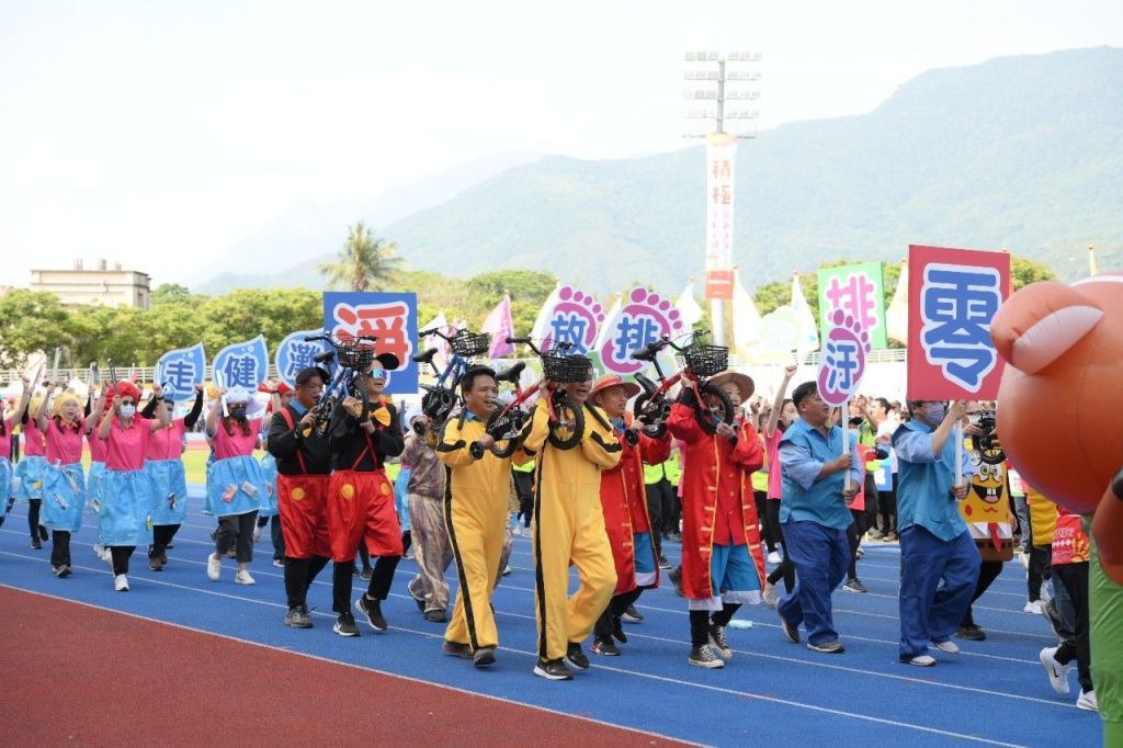 闊別三年並揮別新冠疫情,花蓮市公所團隊23日參加花蓮縣政府及所屬機關暨邀請機關聯合運動大會,不僅在創意進場上,配合縣政府節能減碳、淨零環保政策,得到優等的好成績,在市長魏嘉彥的帶領下,更雙奪丙組精神總錦標、競賽總錦標第一名,此外,也拿下2000公尺大隊接力第二名及傳統拔河第三名,大大展現市公所團隊上下一心、團結合作、永不放棄的精神。
