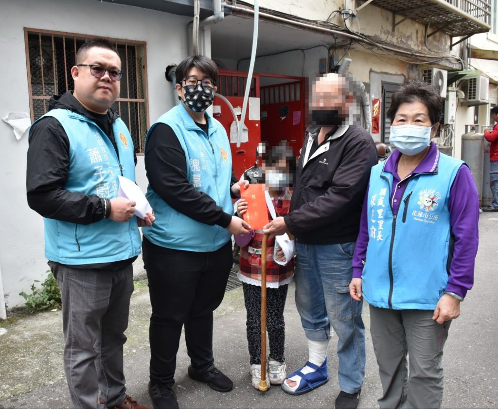 市長魏嘉彥親訪的同時,更發現陳徐先生年幼的孩子在校運動時也遭逢受傷,與國盛里長張芝瑜了解相關情形後,立即致贈急難紓困金及花蓮港務公司急難救助金,並指示社勞課提供實物銀行的民生物資。魏市長請張里長及里幹事持續給予陳徐先生及孩子們關懷,若有任何需要協助的部分,都可向市公所尋求支援。