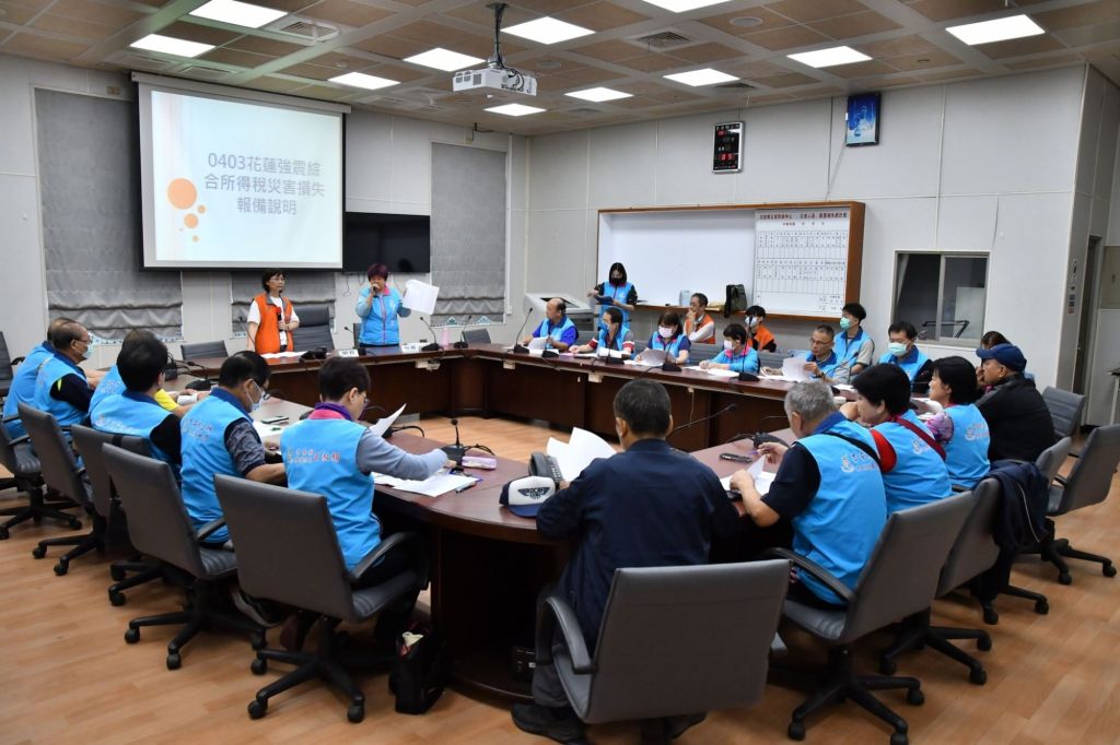 對於村長們所提疑問,如受災家戶已被列危樓無法進屋內拍攝災損情形者,則採從寬認定,提供災損清冊即可;同一住址的親屬統一由一人代表申請,至於房客與房東的災損申報,則以租賃合約內容為準則;而針對山海觀等災損較為嚴重的受災戶,財產損失金額超過15萬元以上者,請逕向國稅局花蓮分局洽辦有關減免申報業務。民眾有任何疑問可撥打免費服務專線0800-000321,或電話:(03)8311860分機200、207、211、213專人協助。