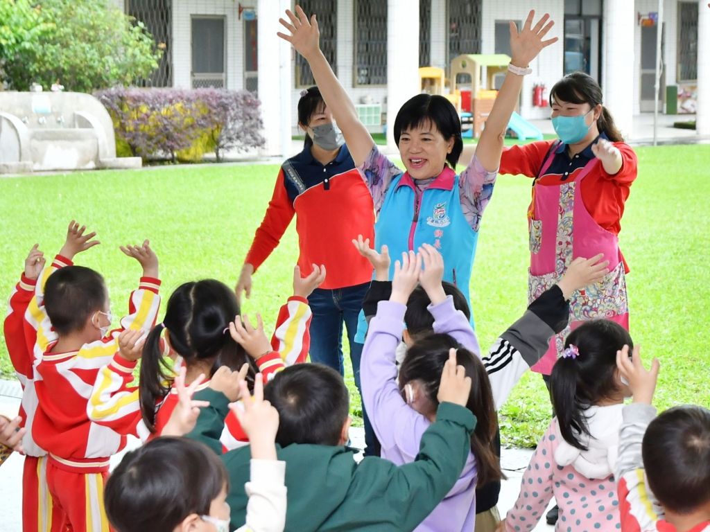 「鄉長阿姨」游淑貞化身防震宣導天使,把握每一次給孩子地震映象深刻的機會教育,讓小寶貝們逐一通過問答互動遊戲,清楚知道在學校或在家裡遇到地震來襲,要躲在桌子下保護身體不要被掉落重物砸傷,而且回家後叮嚀家長將高處易掉落物、櫃中的玻璃品、或是容易掉落的家電物品,暫時搬到較低的安全處置放。