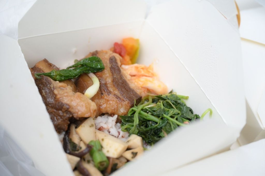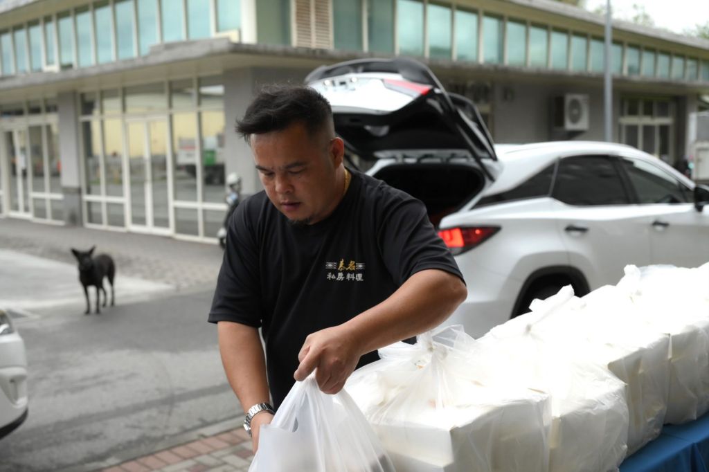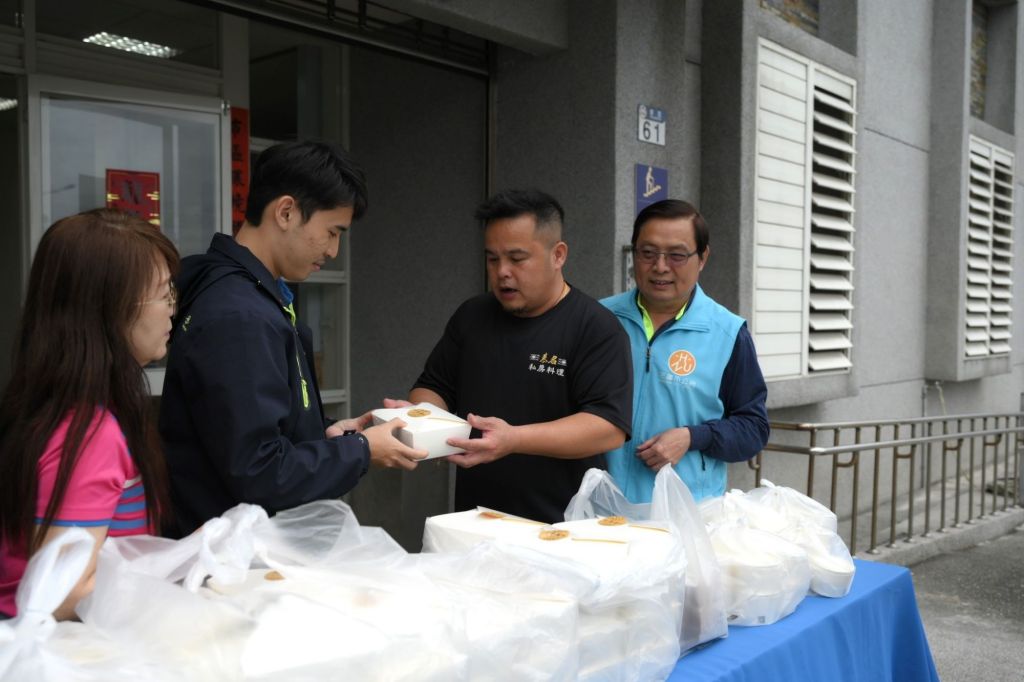 以映慕名私房料理業者胡志強,承襲外婆的手藝,選用在地食材,準備了150份月桃控肉餐盒和米布丁來到花蓮市清潔隊,以期盡一份心力。他說,地震過後,店裡也有同仁成為受災戶,因此相當能感同身受,希望將照顧店裡夥伴的心意,也一同照顧清潔隊英雄們的胃。