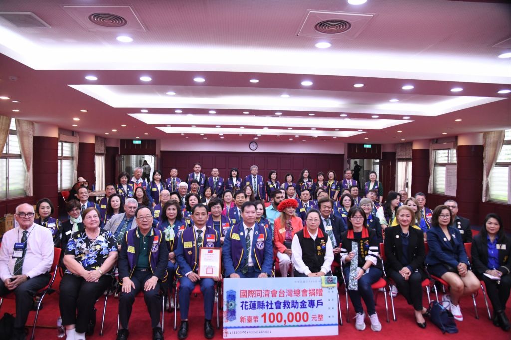 國際同濟會台灣總會今(10)日於縣府大禮堂捐贈新臺幣10萬元予花蓮縣政府社會救助金專戶,由會長林宗勳率前、候任會長及各區域主席、監事及花東區各會會長等與會嘉賓出席,並由縣長徐榛蔚代表受贈,為花蓮注入希望與支持。