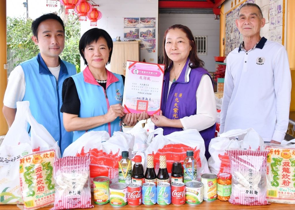 吉安鄉收容中心接獲捐贈物資不勝枚舉,這次收到九天紫元宮捐贈的物資,原安排4月3日捐贈物資幫助鄉內貧困家戶,未料當日清晨發生規模7.2大地震,所幸宮廟未有嚴重災損,住持林有春表示,秉持主祀九天玄女慈悲,早期廟方會將信眾的愛心物資自行發送鄰近弱勢鄉親,久聞游淑貞鄉長對社會福利的重視,以及公所物資捐贈平台的公信力,兩年前開始,年年將信眾祭祀供品與相關物資交由公所分配發放,祈盼善緣大愛皆能送達最需要的民眾手中。