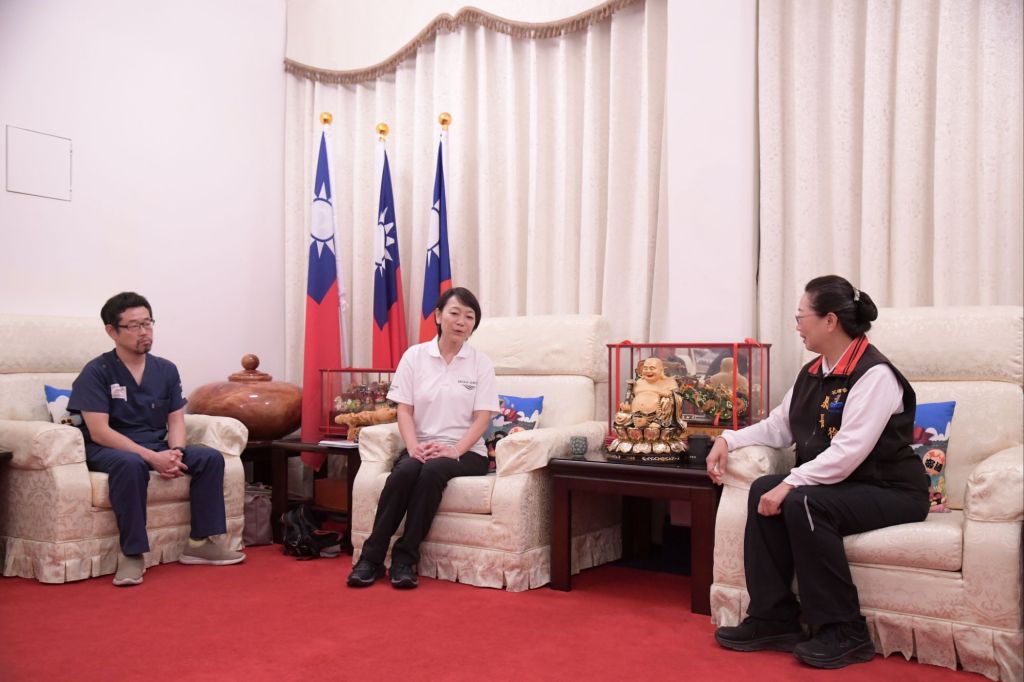 日本NGO組織和平之風團員稻葉醫生(Dr. Mototaka Inaba)表示,他是醫療救護隊的隊長,來到花蓮後,對於花蓮救災速度感到欽佩。他也分享元旦時日本地震的經驗。此次花蓮雖然不需要醫療支援,但還是特別要來看,是否有可以協助的地方,以表達對台灣的感謝。