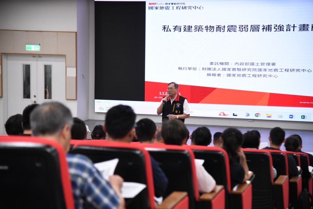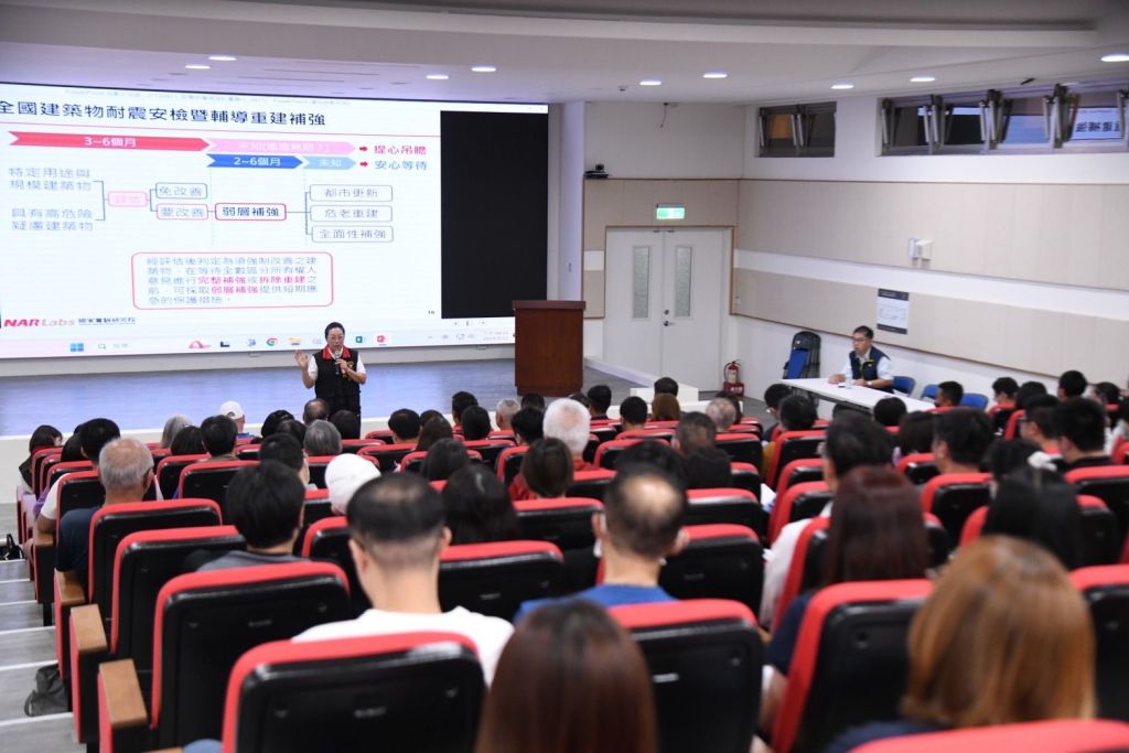 土木技師公會技師江文卿詳述私有建築物耐震弱層補強計畫,以花蓮在0206地震補強後的建物為例,幫助住戶了解私有建築物耐震弱層補強的知識,同時解答住戶對於安全性的相關疑慮。