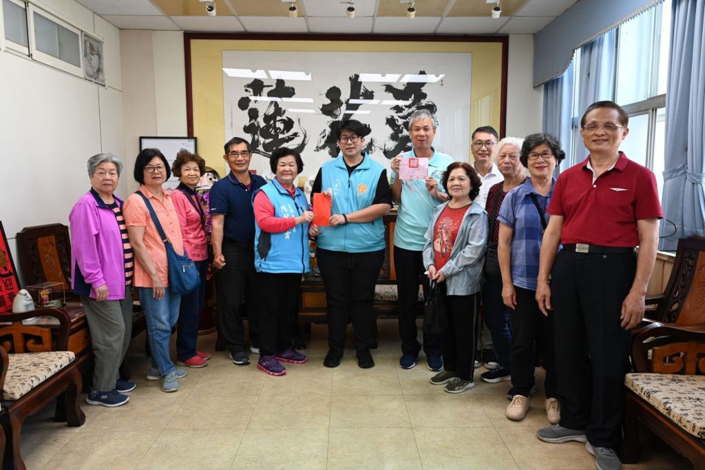而主學里長陳紀美雲與社區發展協會理事長呂清何、總幹事林國寶,率領理監事們前來花蓮市公所,將6萬元的善款捐贈給花蓮市公所慈愛基金專戶。