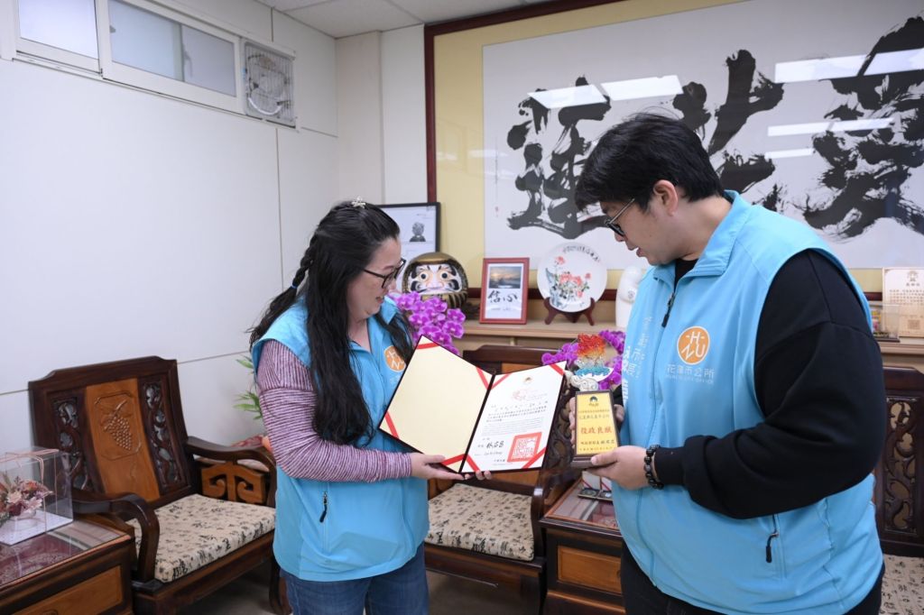 市長魏嘉彥表示,非常開心民政課林玉珊同仁獲內政部頒發績優人員獎章,兵役業務除了有相當多的規範需要向人民解釋,有時還需與國外留學、工作的民眾交涉,請他們歸國盡國民義務,或是與上級單位聯繫任何可行性的折衷方案。他說,感謝國防部與內政部對花蓮市公所的肯定,更感謝潘堂盛課長及林玉珊同仁在業務上付出的辛勞與努力,市公所往後會持續盡全力為民眾服務。