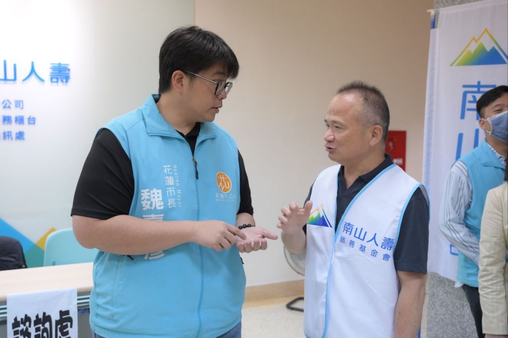 位於花蓮市中山路的南山人壽花蓮分公司,近日發放馥邑京華大樓150受災戶安家補償金,連日正持續至各處災戶瞭解狀況的市長魏嘉彥特地前往現場,與馥邑京華主委劉孟宗進行詳談,也在現場關懷民眾需求、傾聽災戶心聲。魏市長相當感謝南山人壽從0403地震發生後,即在第一時間投入人力及資源參與關懷災民,成為公部門的助力,也安定花蓮人民的心靈。