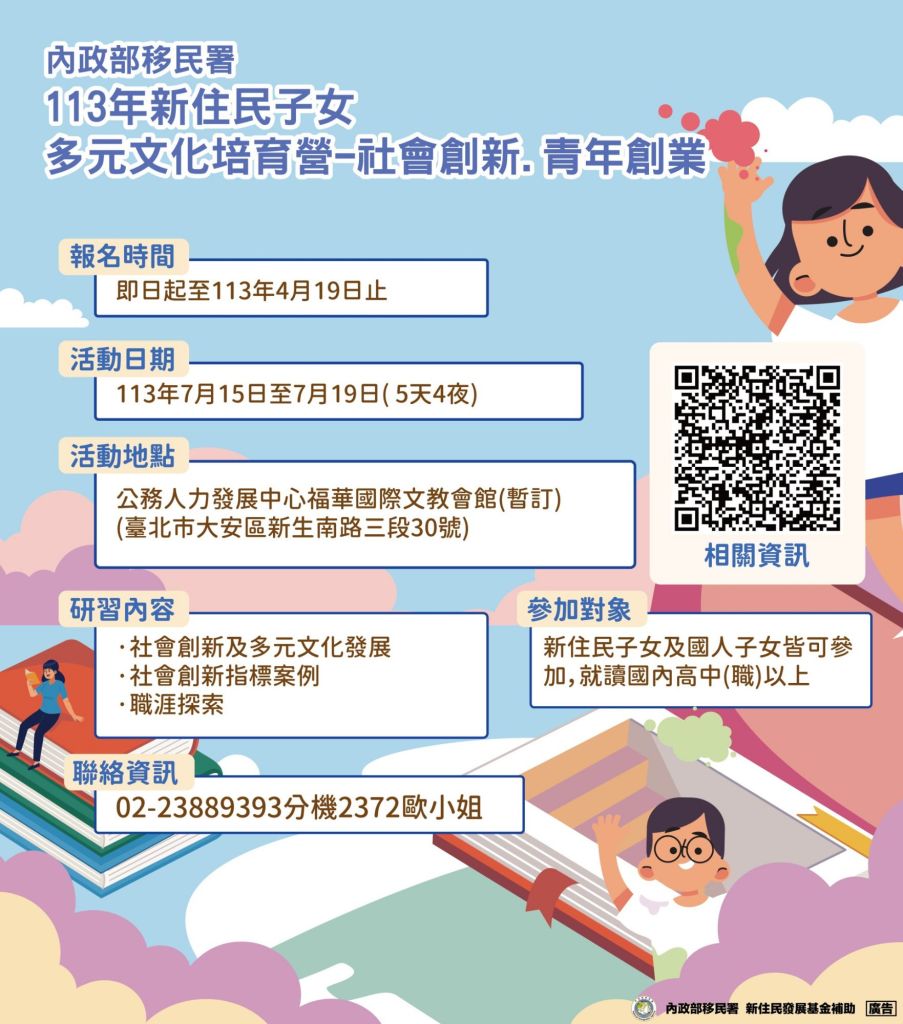 移民署宜蘭縣服務站表示,謝謝李蓬女士分享寶貴的飲食知識,讓新住民家庭成員能有更豐富的健康管理與飲食營養知能。此外,移民署將於113年7月15至19日舉辦為期5天的「113年新住民子女多元文化培育營」,報名延長至113年5月3日截止(以郵戳為憑),在此鼓勵高中(職)以上在學新住民子女及國人子女把握最後期限踴躍報名參加,詳情請至移民署全球資訊網或至「新住民培力發展資訊網」瀏覽查詢。