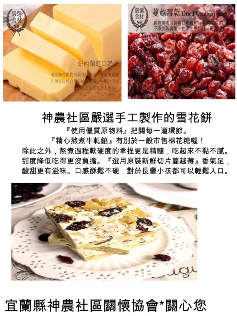 李蓬女士首先介紹健康飲食觀念,分享如何成功幫助先生在2個月減重10公斤的秘訣-控制飲食及調整飲食順序,並利用專業體脂計,讓現場民眾實測個人體重與體脂、蛋白質與水分、骨密度與肌肉骨骼量等數值,一邊聆聽李女士的飲食調整建議,同時品嚐宜蘭神農社區關懷協會所製作「雪花餅」。雪花餅是由蔓越莓、安佳奶油及餅乾等食材,並以海藻代替砂糖所製成,清爽不油膩!近年來受到當地居民所喜愛,更是宜蘭特色伴手禮!越南新住民阮芳草女士表示:謝謝李老師提供實用的健康管理知識,同時也能享用美味的雪花餅,一舉兩得、收穫滿滿!