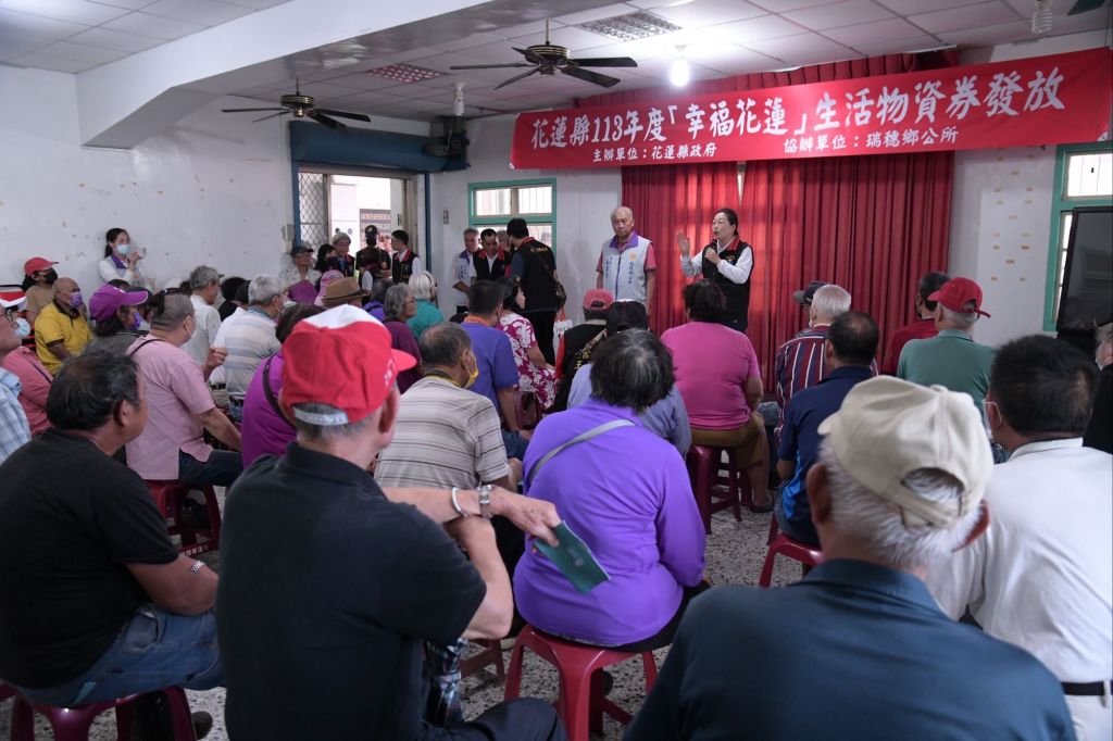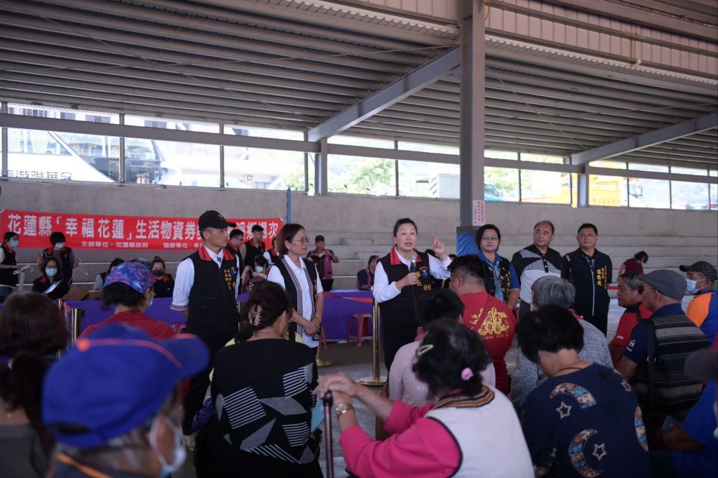 花蓮縣政府113年度「幸福花蓮生活物資券」今(29)日開始發放,縣長徐榛蔚在縣府社會處長陳加富陪同下,前往富里、卓溪、玉里、瑞穗等發放據點,關懷鄉親並親手發送生活物資券,0403強震重創花蓮,徐縣長期望鄉親們平安健康,大家一起為重建花蓮、復甦花蓮、為花蓮加油而努力!