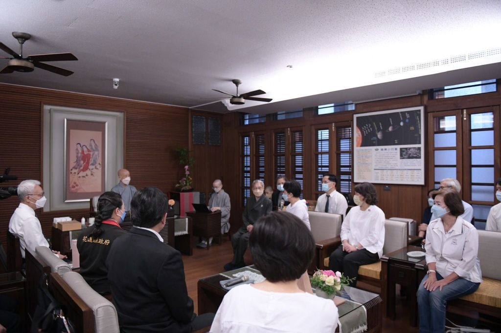 台中市盧秀燕市長向證嚴上人表示,慈濟一直以來發揮慈濟的精神做好事,姊妹縣市多年來都受到慈濟的幫忙與關懷,大家都想要表達對慈濟的感謝,來慈濟就是回家的心情,所以一定要來慈濟親自拜會上人,也向上人報告大家努力實踐上人慈悲的精神。二十五年前921大地震重創台中,台中災情慘重,受到各界相當多的協助,尤其當時受到慈濟以及花蓮許多的幫忙,今天是台中報恩的時刻,花蓮重建是長時間的工作,台中也會攜手各個縣市同心協助花蓮縣政府,竭盡所能提供協助。