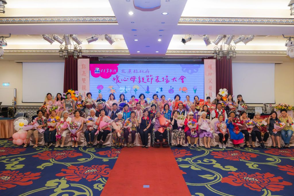 花蓮縣政府「113年暖心父母親點亮雙親情-母親節表揚大會」5月4日於理想大地渡假飯店盛大舉行,由花蓮縣政府社會處黃舒儀副處長表揚39位暖心母親代表。