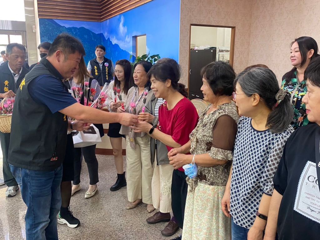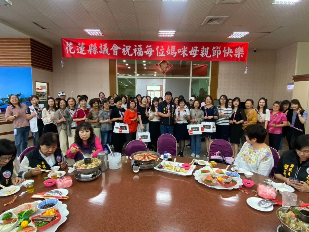 花蓮縣議會今10日中午在本會會館舉辦113年母親節慶祝大會,議長張峻特別致贈議會的女性議員及女性員工提拉米蘇蛋糕、禮券及康乃馨,現場女性同仁樂不可支,藏不住的開心溢於言表,止不住的喜悅笑逐顏開,全場齊喊母親節快樂,讓全體媽媽樂開懷。