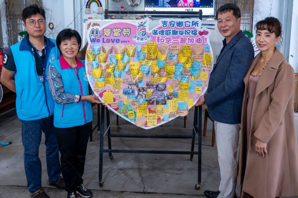 游淑貞感謝企業共構吉安的幸福美好,楊董事長長期與公所攜手滿足長輩與孩童人生最榮耀、幸福的期待,共同成就每份關懷獻愛時刻。祝福不久的將來可再看見吉安麥當勞重建成為吉安新地標!