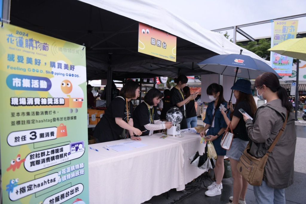 現場有超過40攤在地美食與特色商品,並準備豐富大獎,讓與會民眾除了享受購物樂趣。113年度花蓮購物節活動將於6月1日正式開跑,為期12週,週週抽大獎,獎項包含Apple創業雙機( 2024最新iPad Pro+ iPhone 15)、LG自動集塵濕拖無線吸塵器、Apple Watch Ultra 2及Dyson三合一涼暖空氣清淨機等等,並支援電子發票同步登錄功能,以鼓勵店家及民眾使用電子載具,響應無紙化消費;考量花蓮產業以微型創業居多,特以「消費滿百」即可抽獎的方式進行,每屆帶動金額屢創佳績,前三屆總登錄筆數逾十萬筆,創造近7億元的商機,業者迴響熱烈報名踴躍,累計迄今全縣特約商店逾2,000間,民眾只要於特約商店消費滿佰即可參加,將逐週依序於花蓮北、中、南區抽出幸運兒。
