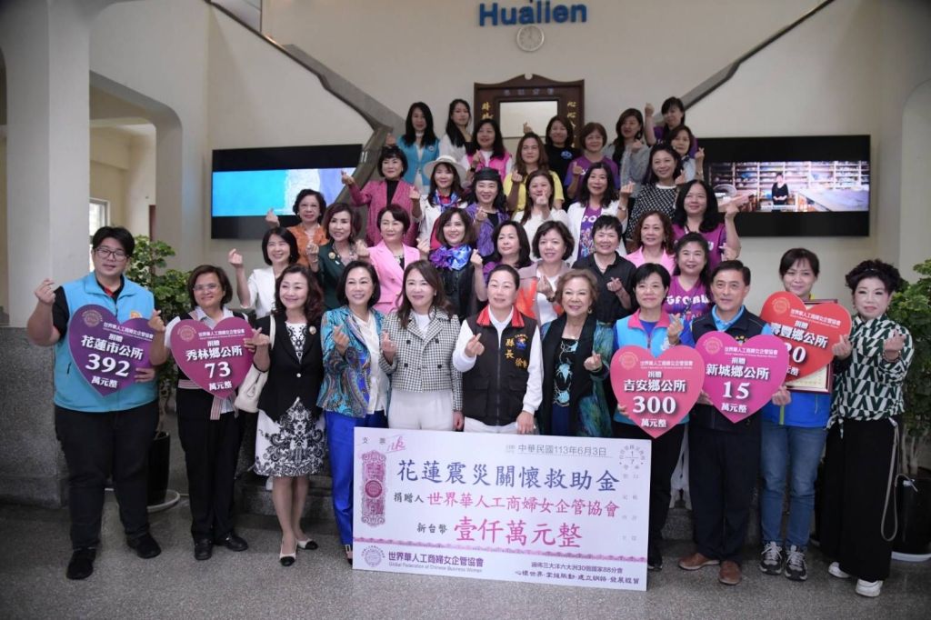 世界華人工商婦女企管協會總會長莊住維表示,震後每次來到花蓮,都能發現市容正在快速恢復,感謝所有縣府、鄉鎮公所及民間團體的付出,世界華人工商婦女企管協會長期關注花蓮弱勢,在4月底發起賑災募款,希望為花蓮重建貢獻一份心力。