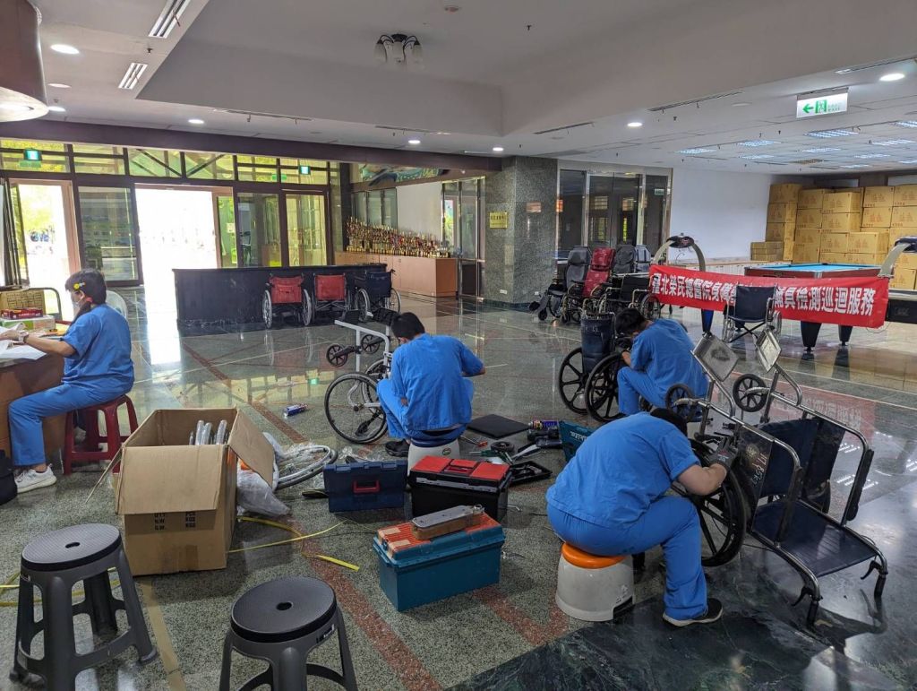 臺北榮民總醫院身障重建中心每年定期舉辦榮民生活輔具維修巡迴服務,並協助臺北榮民總醫院玉里分院住院榮民輪椅、便盆椅、助行器、手杖等生活輔具進行維修,同時也提供其他類別輔具檢測與諮詢服務。