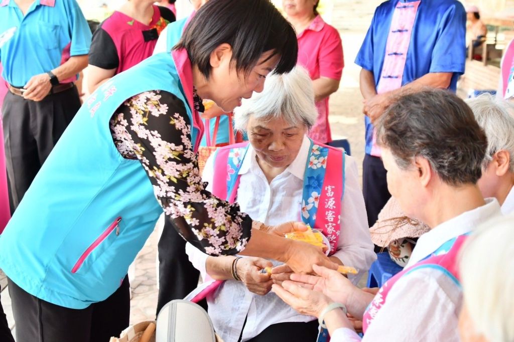 會場中鄉長游淑貞受到鄉親熱烈的歡迎,姐姐妹妹們除了用接力式的擁抱來表示歡迎之外,也對游鄉長自103年到108年六年期間,擔任理事長帶領這個協會延伸許多客家文史研究推展,更保留了唐山老師18首的客家歌謠,獲智慧財產授權給協會成為花蓮縣各客家歌謠班得以延續傳唱的幸福。