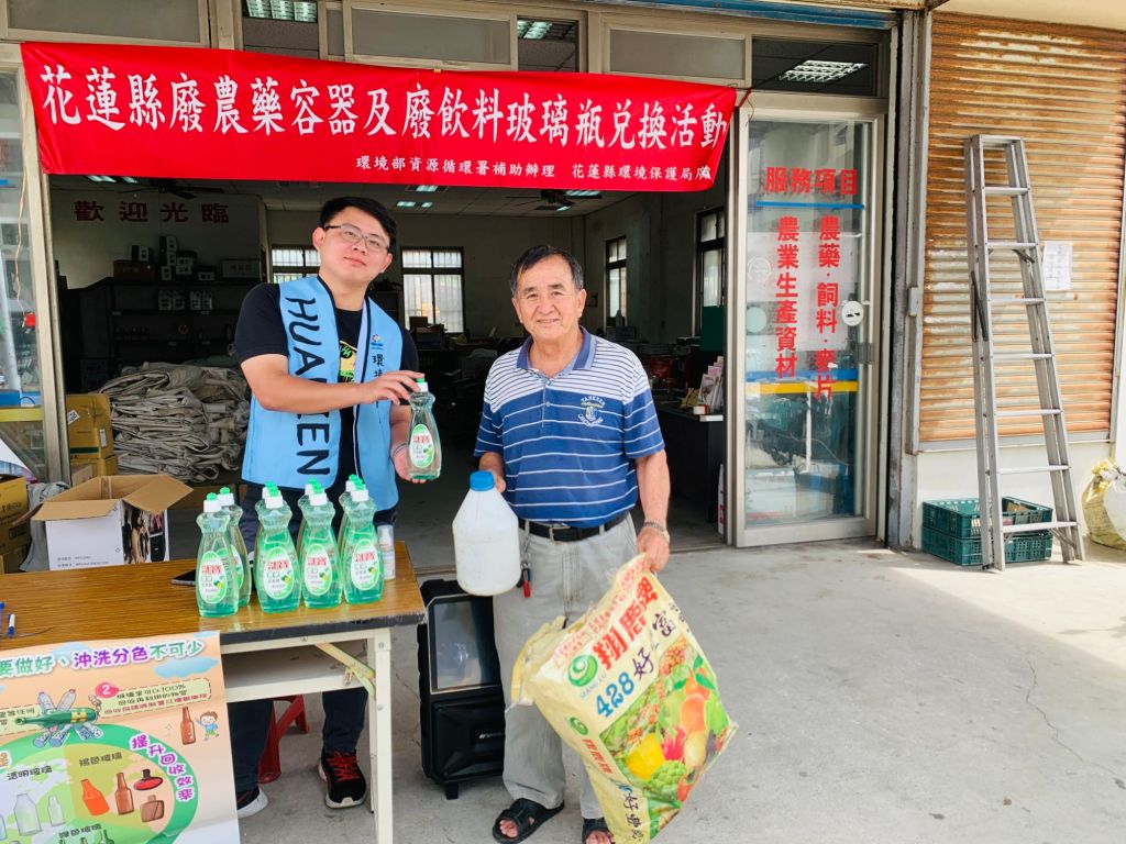 為推廣正確回收廢農藥容器及廢玻璃容器觀念,花蓮縣政府今年度分別於新秀地區農會、吉安鄉農會、玉溪地區農會、瑞穗鄉農會、鳳榮地區農會等5個鄉鎮市,各舉辦「農情蜜意換好禮」宣導及兌換活動,加強民眾及農民正確回收觀念與瞭解回收管道。