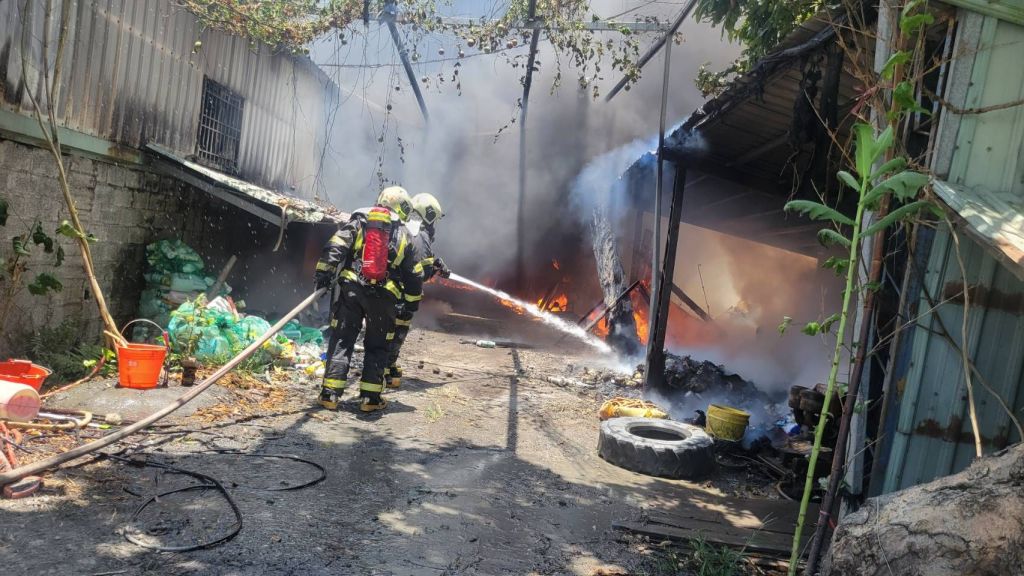 火警現場位於一片稻田中,附近道路狹窄,各地消防分隊陸續抵達後發現無法接近,只能以接管方式超過百米提供水源,另外也緊急使用抽水機抽取灌溉水源使用,由於正值中午時分,天氣炎熱,消防員持續接力滅火,目前已在控制中。