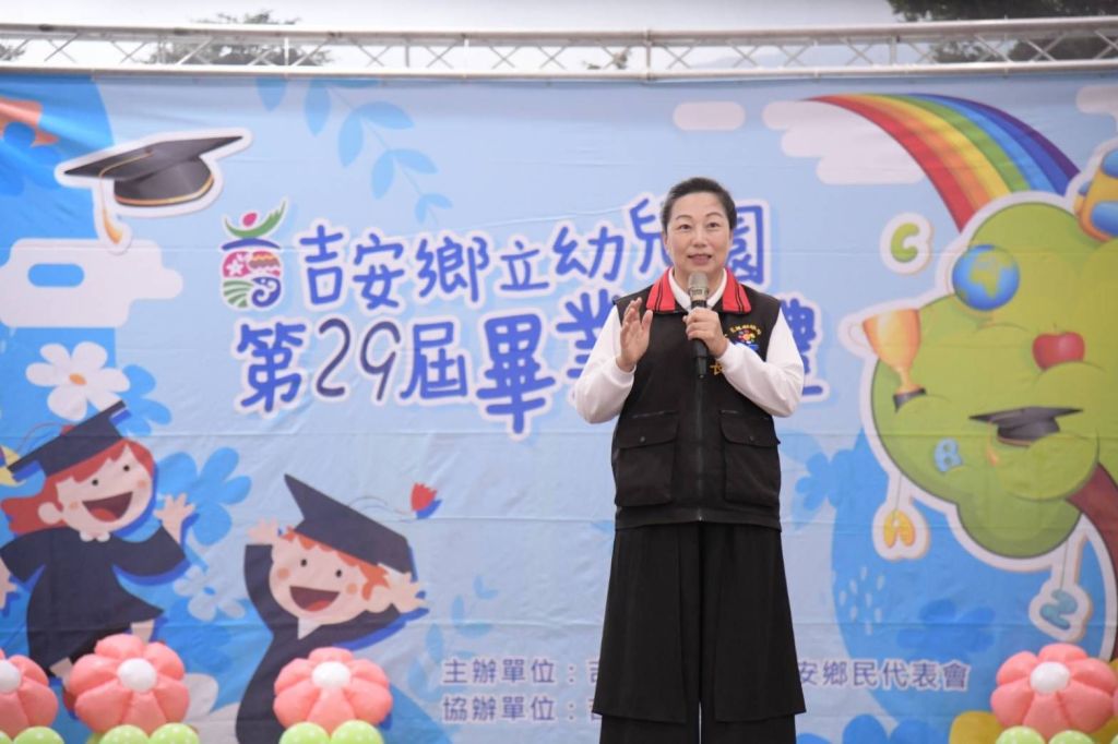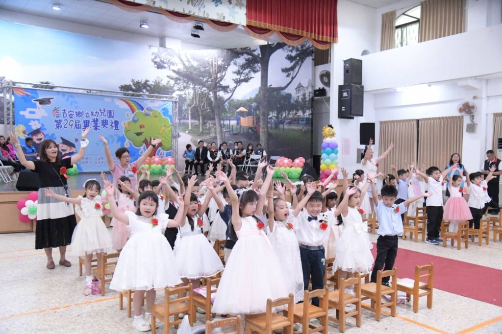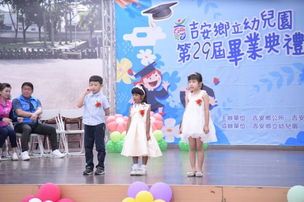 吉安鄉立幼兒園今(14)日舉辦「第29屆畢業典禮暨才藝表演」活動,花蓮縣長徐榛蔚偕同立法委員傅崐萁、吉安鄉長游淑貞到場並致上誠摯祝福,現場與師生家長同樂,期許孩子們都能健康快樂地邁入下一個學習階段。