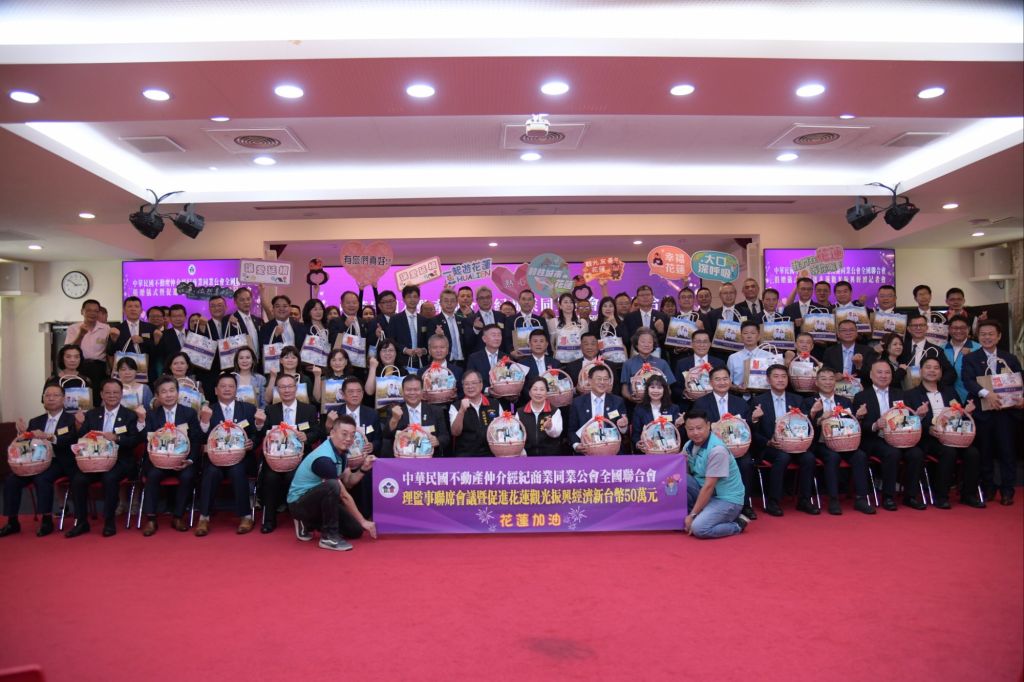 為振興花蓮震後經濟,中華民國不動產仲介經紀商業同業公會全聯會舉辦兩天一夜促進花蓮觀光振興經濟活動,並代表日本姐妹會全日本不動產協會捐助100萬日圓「義援金」予花蓮縣房仲公會,縣長徐榛蔚今(17)日到場見證台日不動產業的團結互助精神,並致贈伴手禮,感謝房仲全聯會以實際行動挺花蓮。