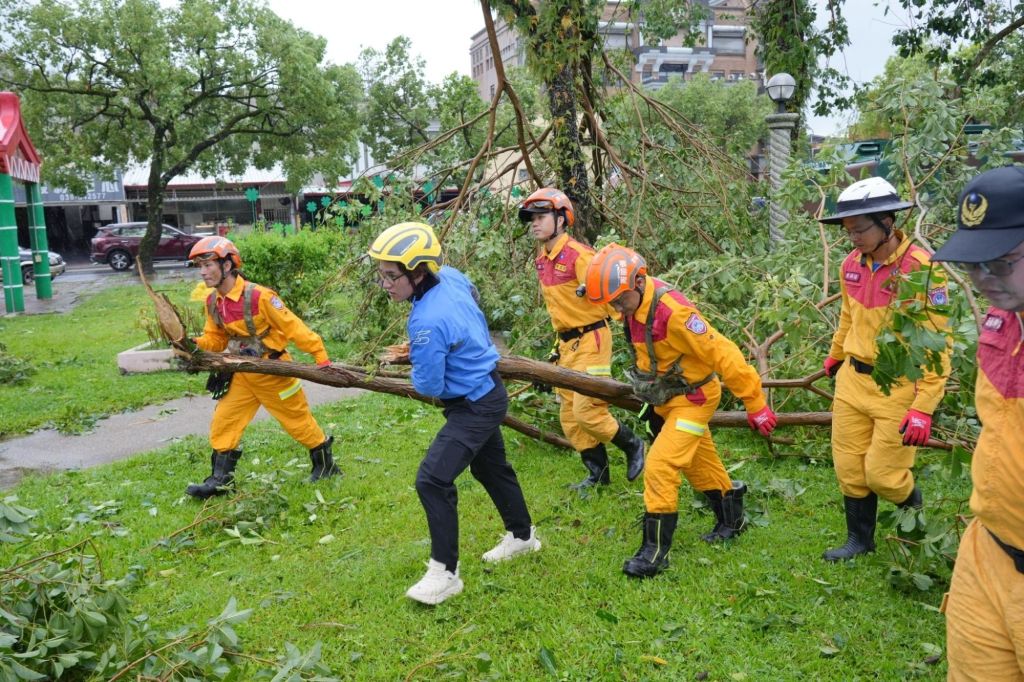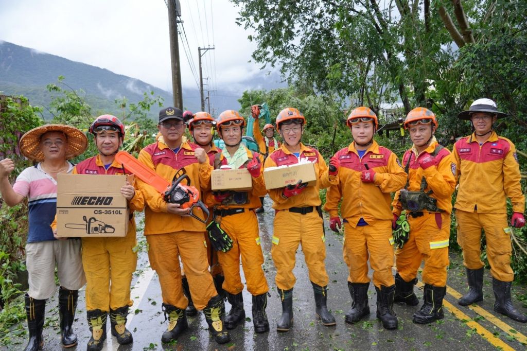 在搶修路障隊伍中,看見一群身手矯健、服裝整齊、速度不凡的一群人,很快就可辨識是一群義消特種搜救大隊隊員,自己攜帶著專業鏈鋸、小怪手、破壞工具及小型載運機械,由大隊王錫白大隊長、顏勝裕總幹事率隊,協助清除各村道路行駛阻礙的路障,透過隊員們豐富的經驗,讓原本需要兩個工作天的清除作業,在短短四個小時內就從吉安村、永安村、慶豐村、仁和仁安村陸續搶通,雖然還鋸壞了鏈鋸卻仍以雙手熟練的使用傳統鋸完成任務。