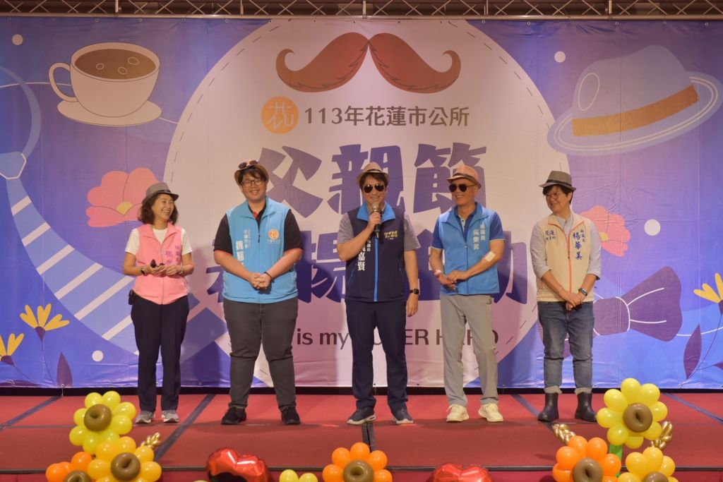 現場邀請「國裕里富安珍愛舞動班」演出精彩舞蹈為活動開場後,魏市長偕同社勞課長蕭子蔚與同仁們一起出席,為在場的父親代表們獻上祝福。花蓮市民代表會主席李振瑋,副主席黃達祥,市民代表蕭民隆、平島‧部定,花蓮縣議員魏嘉賢、張美慧、吳東昇、楊華美、韓林梅,花蓮縣政府北區服務中心主任張治華及各里里長、各部落頭目等多人也都到場致意。